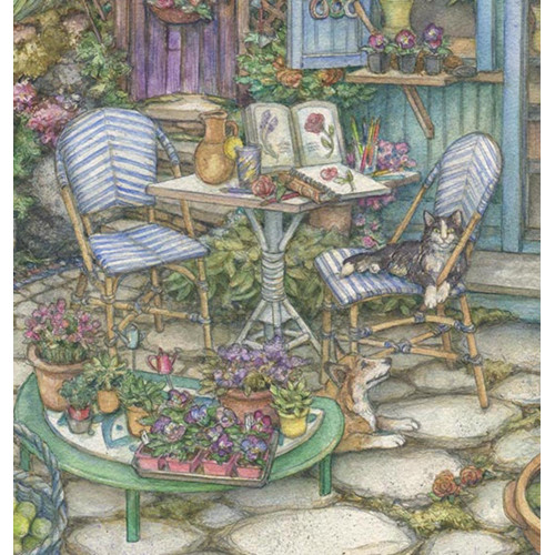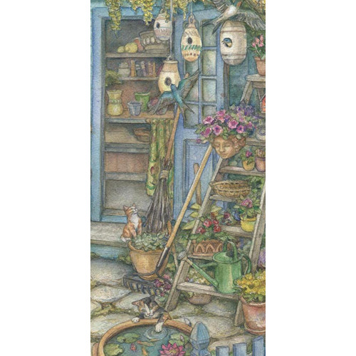 Tags: Garden shed, gardening, cats, roses, , Kim Jacobs, watercolor, original art, garden, peaceful retreat, English Country Style,